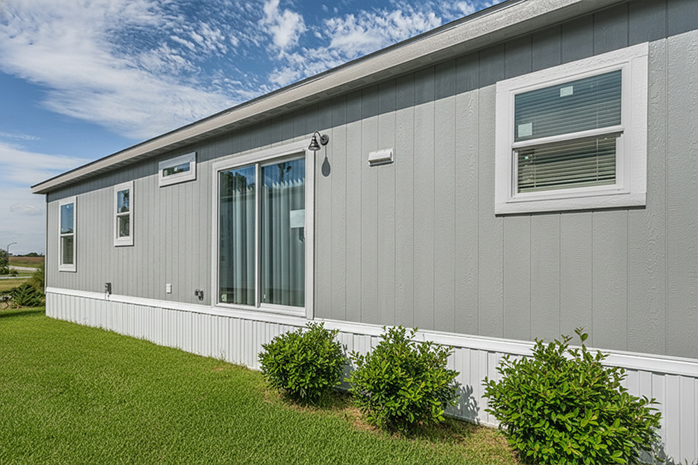 - Manhattan with Upgrade LP smart Siding. Standard sliding Glass door.
